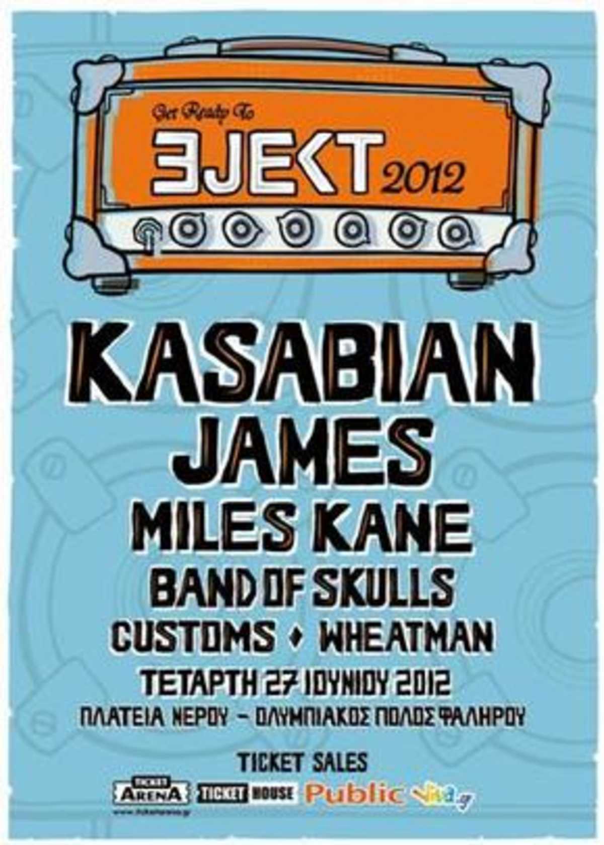 Το EJEKT Festival 2012 είναι το απόλυτο live event του φετινού καλοκαιριού! Με το εξαιρετικό και ολόφρεσκο line-up του, έχει γίνει talk of the town εδώ και μήνες και έχει κάνει χιλιάδες θεατές να αδημονούν για την Τετάρτη 27 Ιουνίου, όταν θα δούμε για πρώτη φορά επί σκηνής στην Ελλάδα καυτά ονόματα όπως οι Kasabian, ο Miles Kane και οι Band Of Skulls και θα ξαναζήσουμε την συναυλιακή εμπειρία των James!