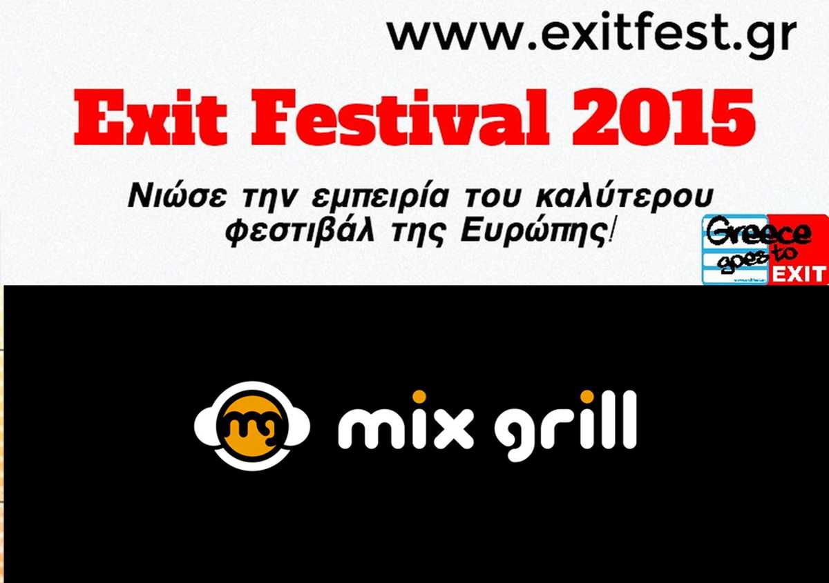 Για πέμπτη χρονιά το Mix Grill συνεργάζεται με το EXIT Festival και προσφέρει στους αναγνώστες του μεγάλα δώρα! Στο διαγωνισμό που κάνουμε μαζί με το EXIT Festival 2015, σας προσφέρουμε δώρα αξίας 1.700 Ευρώ!