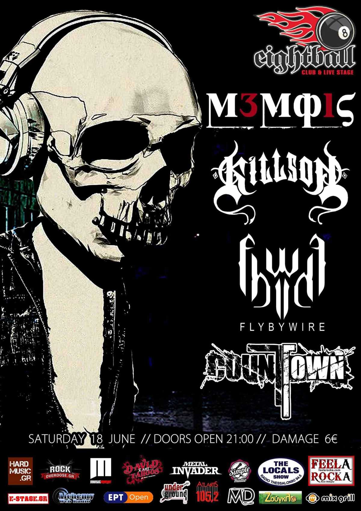 Οι Μέμφις (Alternative Metal/Rock) & Killson (Alternative Metal/Rock) από Θεσσαλονίκη,  υποδέχονται τους COUNTOWN (Nu Metal/Rap Core) & FlyByWire (Rap Rock) από Αθήνα στο 8ball στη Θεσσαλονίκη (18/6) σε συνέχεια των κοινών εμφανίσεων τους από τον πολυχώρο Μεθοδία στην Αθήνα ( 11/6).