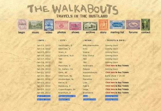 As you can see in the official page above, a favorite band for Greek music lovers, Walkabouts come to Greece again (been a while) in January 2012.